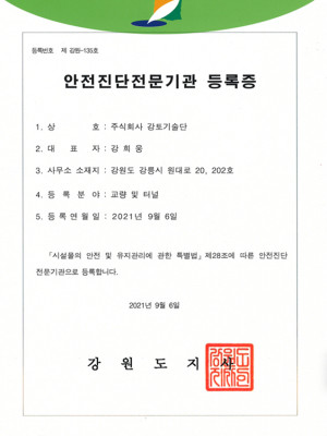 설계사업 / 지반사업 / 시설물안전진단 / 품질검사 전문기관, (주)강토기술단